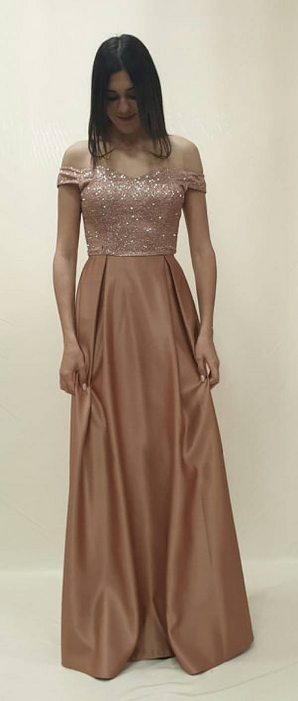 Φόρεμα μακρύ με γυαλιστερό μπούστο