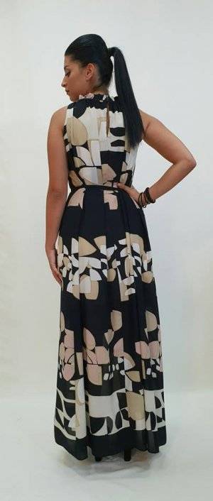 Φόρεμα μακρύ με παρτους ωμούς και σούρα στο λαιμό