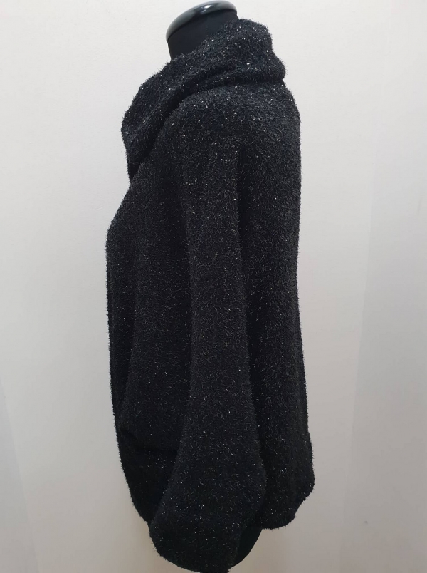Μπλούζα με ντραπέ λαιμό με άνοιγμα, πλεκτή με άσημο κλωστή και πέλος σε αέρινη γραμμή με μανίκι νυστερίδα